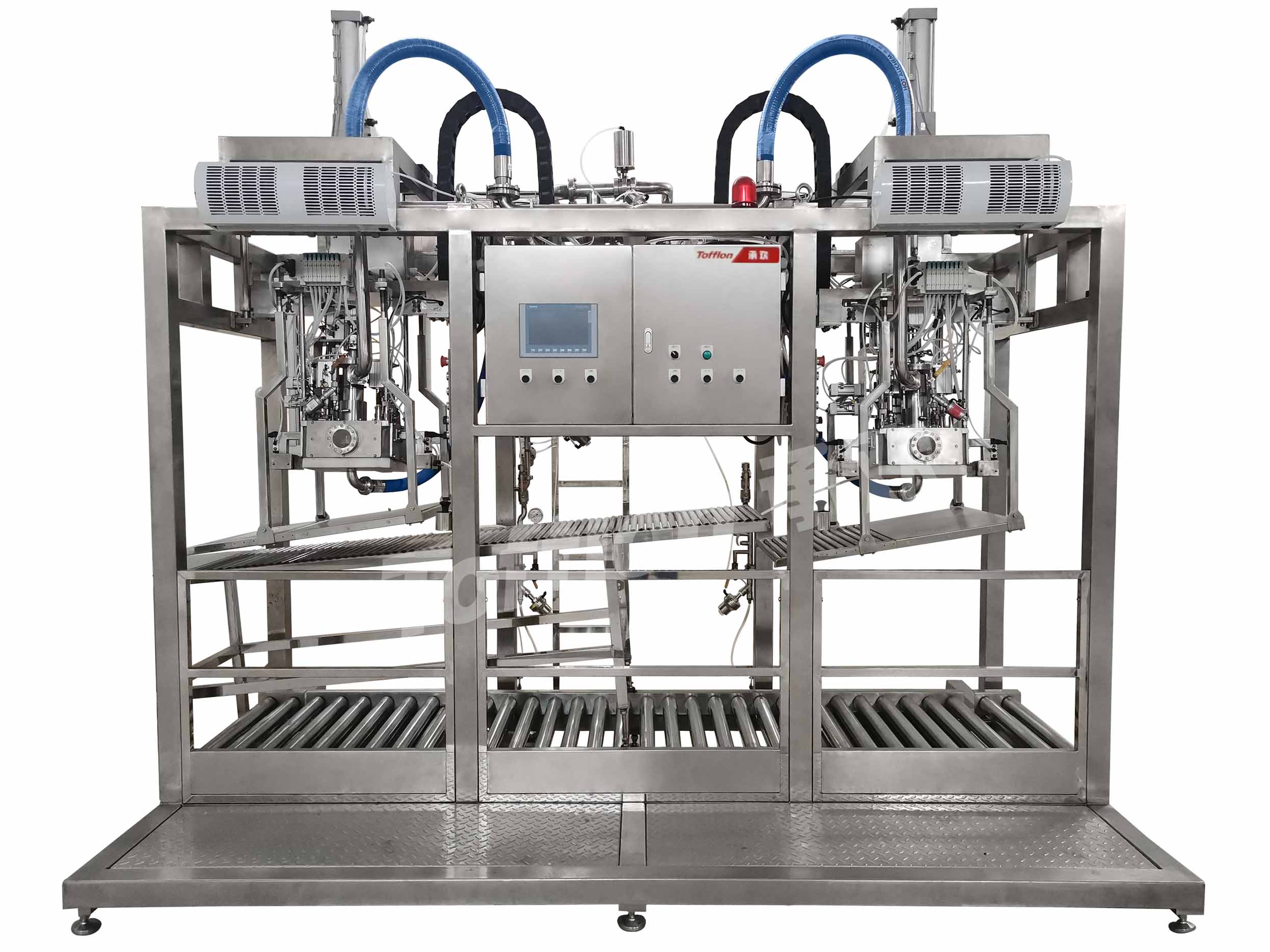 The aseptic large bag filling system integrated pre-sterilization, filling and cleaning, and can realize filling with various capacities of 5-220kg. According to customer needs, it can be designed as multiple filling heads or ton bags/ ton boxes and other filling forms, which can fill different capacity packaging containers at the same time, and is compatible with BIB packaging. It is suitable for aseptic filling of various products suah as fruit and vegetable juice, puree, fruit particles, jam, herbal tea, dairy products, etc.