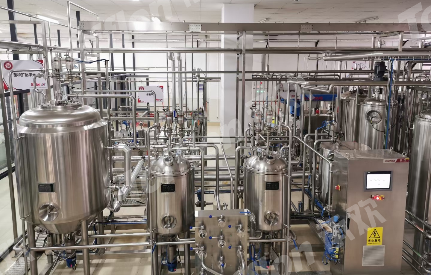 The company's self-developed multi-function pipe-in-pipe sterilization and filling system for large fruit pulp has been applied to many production lines and has been fully recognized by customers. The project of Guizhou University-Tofflon Joy Intelligent Brewing Incubation Base has been completed perfectly, which can meet the neutral experiment of various kinds of liquor such as craft beer, fermented rice wine and rice flavor liquor. Ningxia Wolfberry beverage, Shanxi Xiurong seabuckthorn juice, Beijing Deda traditional Chinese medicine extraction, Guangxi Tiansheng tea wine and other production lines are also gradually being installed and commissioning.