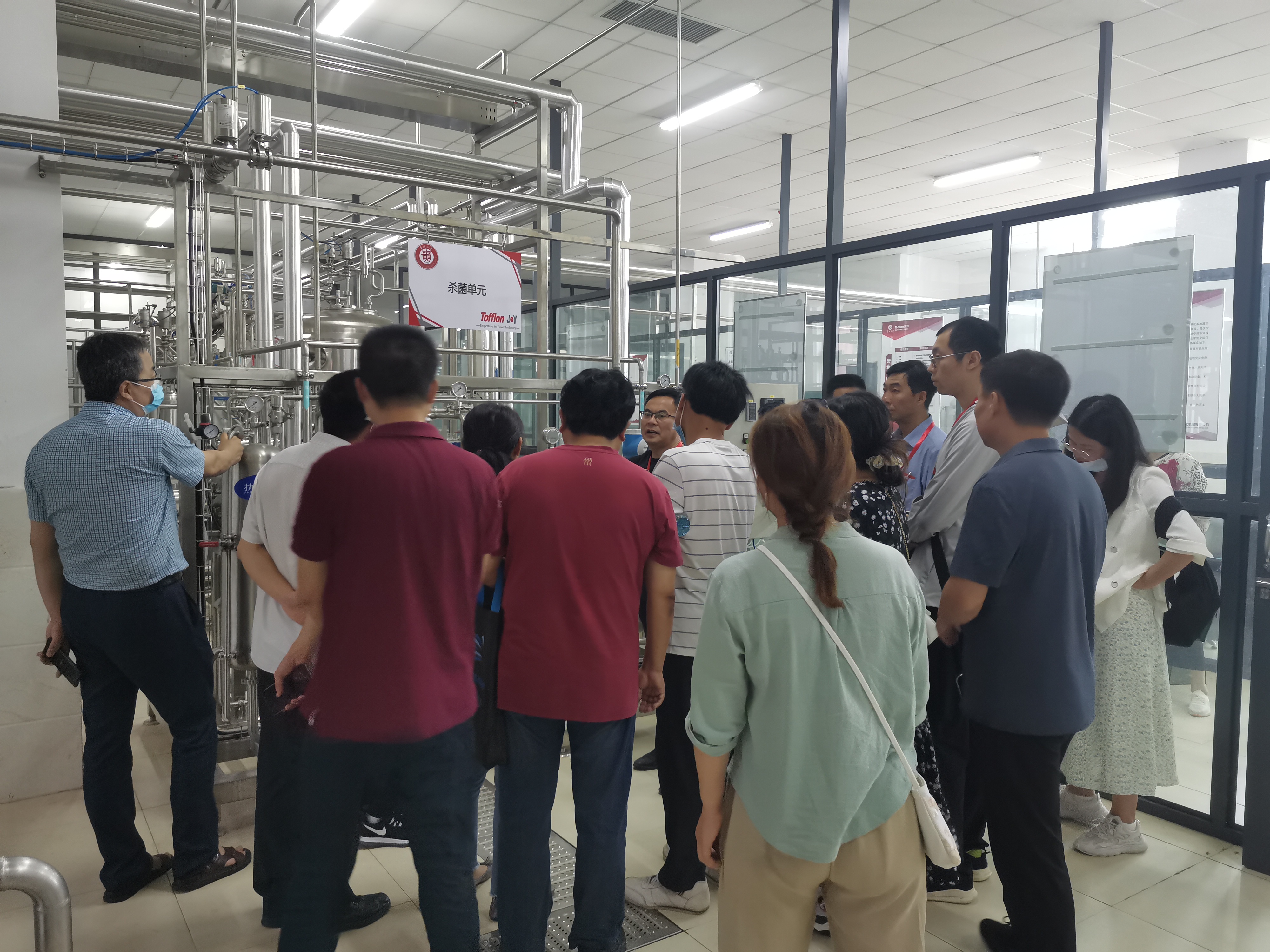 After the meeting, Shanghai Tofflon Joy organized some representatives, experts and scholars to Guizhou University - Shanghai Tofflon Joy Intelligent Brewing Incubation Base to visit the wine and drink comprehensive pilot line. Du Sufeng, chief engineer of Shanghai Joy, made a detailed introduction on the equipment configuration, product types, discharge specifications and technological process of the wine and beverage production line. During the visit, everyone asked questions enthusiastically and discussed deeply. The atmosphere on the scene was very active.