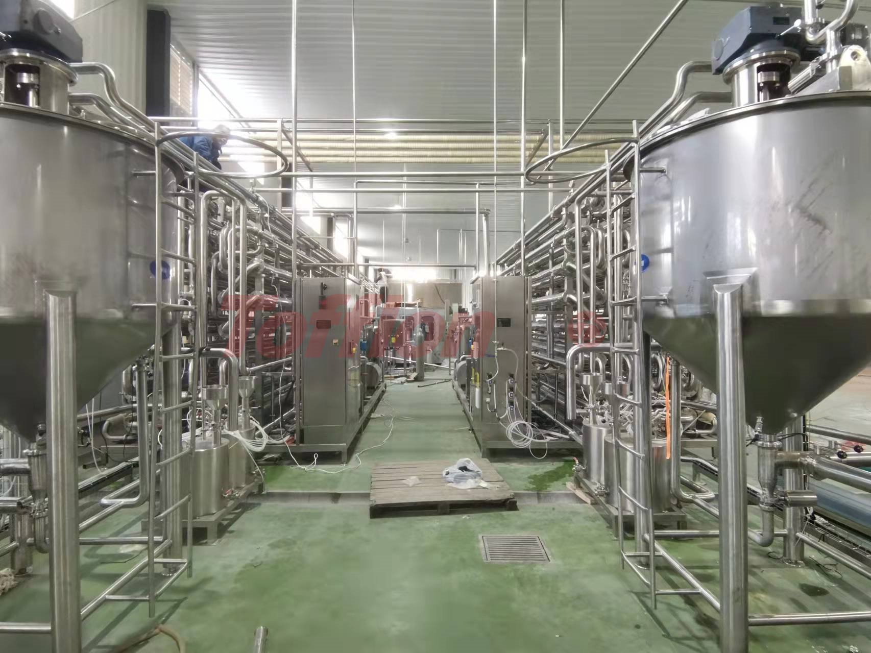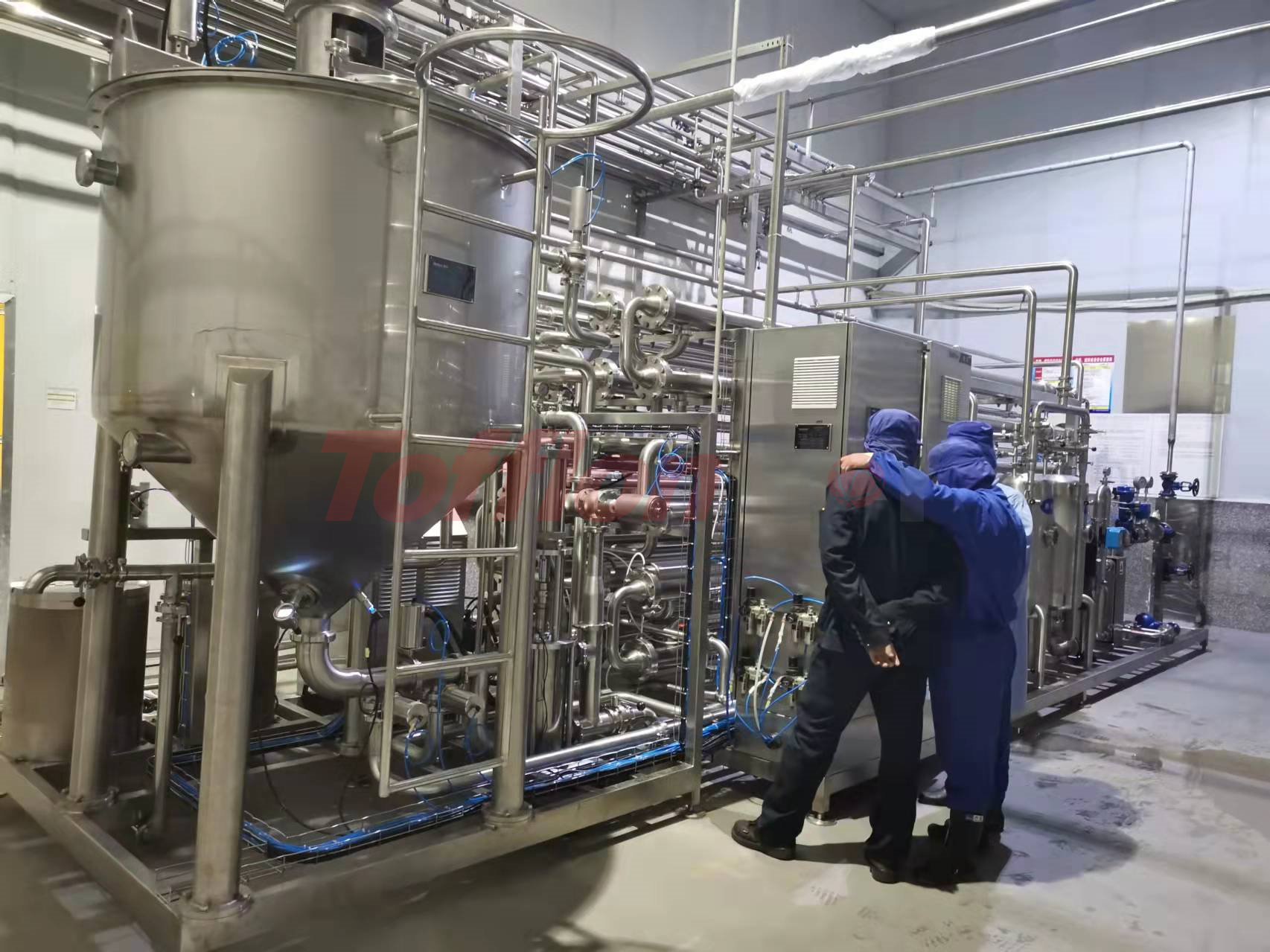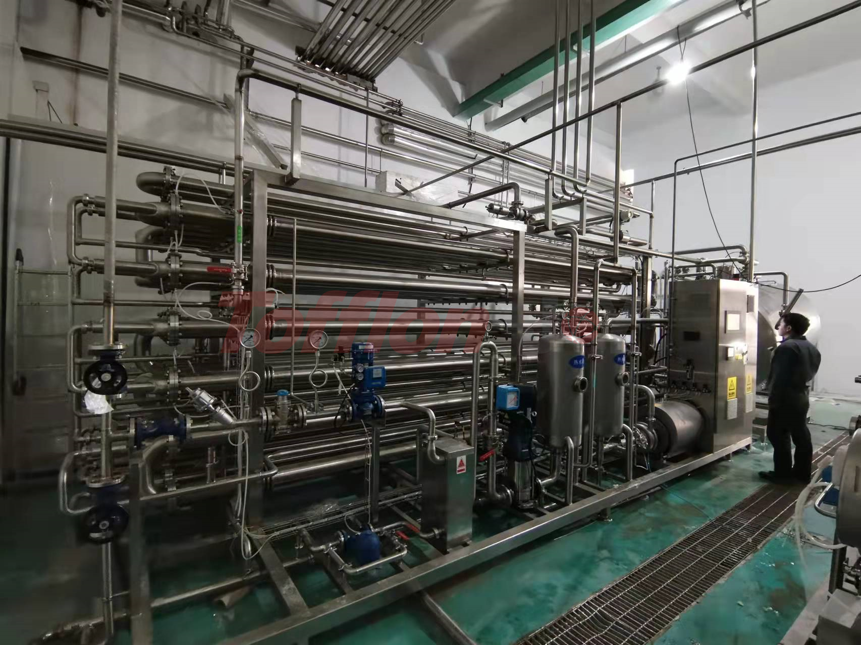In order to present the integrity of the product, the heating time and sterilization intensity of the processing process are the key. At the same time, the influence of particle size, shape, content and other factors should be considered. Tofflon Joy multi-functional tube-in-tube sterilizer sets accurate parameters and processes for high viscosity and large particle products to ensure the stability of the product in the sterilization process and meet the connection of various packaging forms of equipment; For example: aseptic big bag (BIB) filling machine, mobile sterile TT tank, sterile ton box packaging, large aseptic storage tank, direct drink filling machine, Tetra Pak aseptic filling machine, etc.