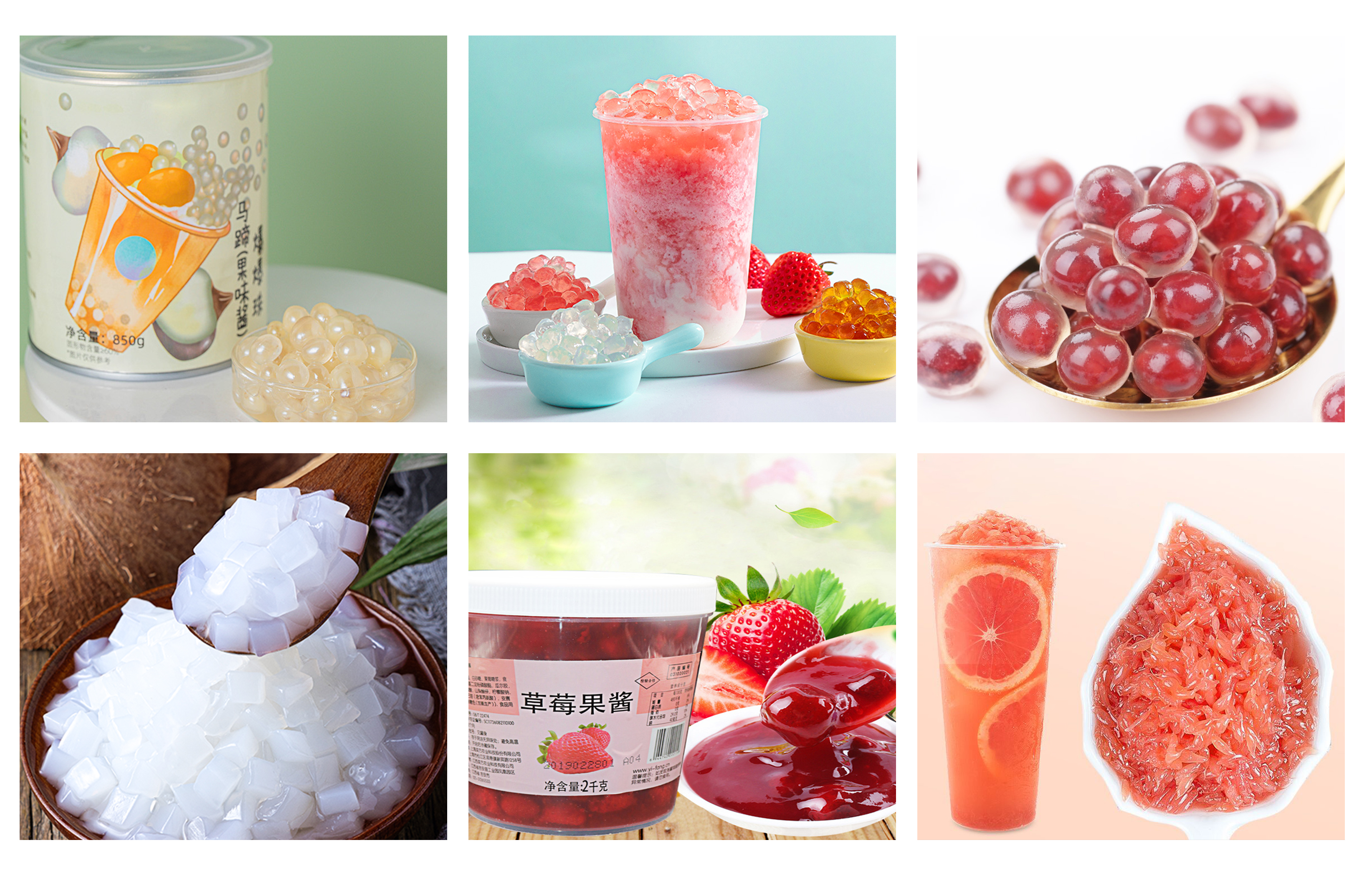 ●Particle products: orange paste, coconut pulp, bubble tea, diced fruit, fruit particle, popping boba, crystal ball, etc. (diameter ≤10mm; particle content≤70%)
