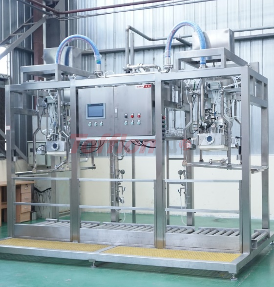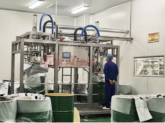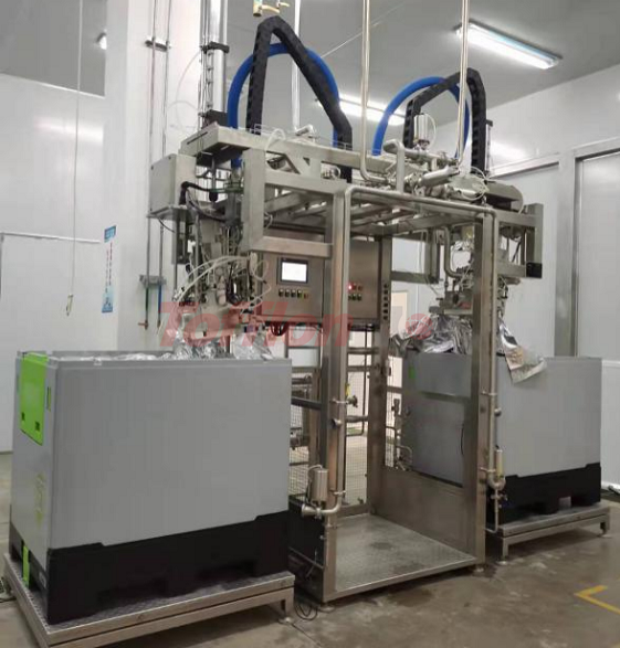 The aseptic large bag filling system integrates pre-sterilization, filling and cleaning, and can realize filling with various capacities of 5-220kg. According to customer needs, it can be designed as multiple filling heads or ton bags/ton boxes and other filling forms, which can fill different capacity packaging containers at the same time, and is compatible with BIB packaging.