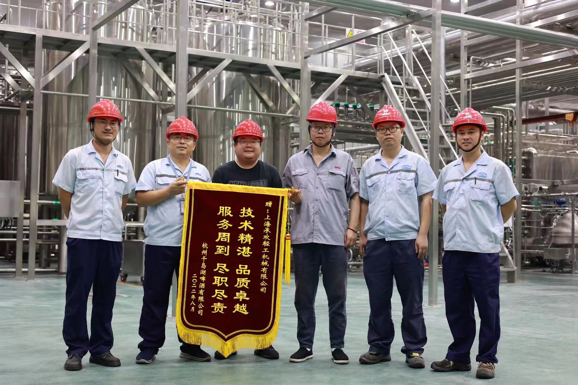 Recently, the highest temperature is as high as 40 ℃, and the scorching sun can not stop the enthusiasm of the on-site construction of the Shanghai Tofflon Joy. On the premise of doing a good job in heatstroke prevention, the engineering department has grasped the nodes and spared no effort to speed up the construction progress. The exquisite technology and excellent quality have been greatly affirmed and recognized by Hangzhou Qiandao Lake Beer Co., Ltd., and their satisfaction has been printed on the banner and presented to the on-site engineering department.