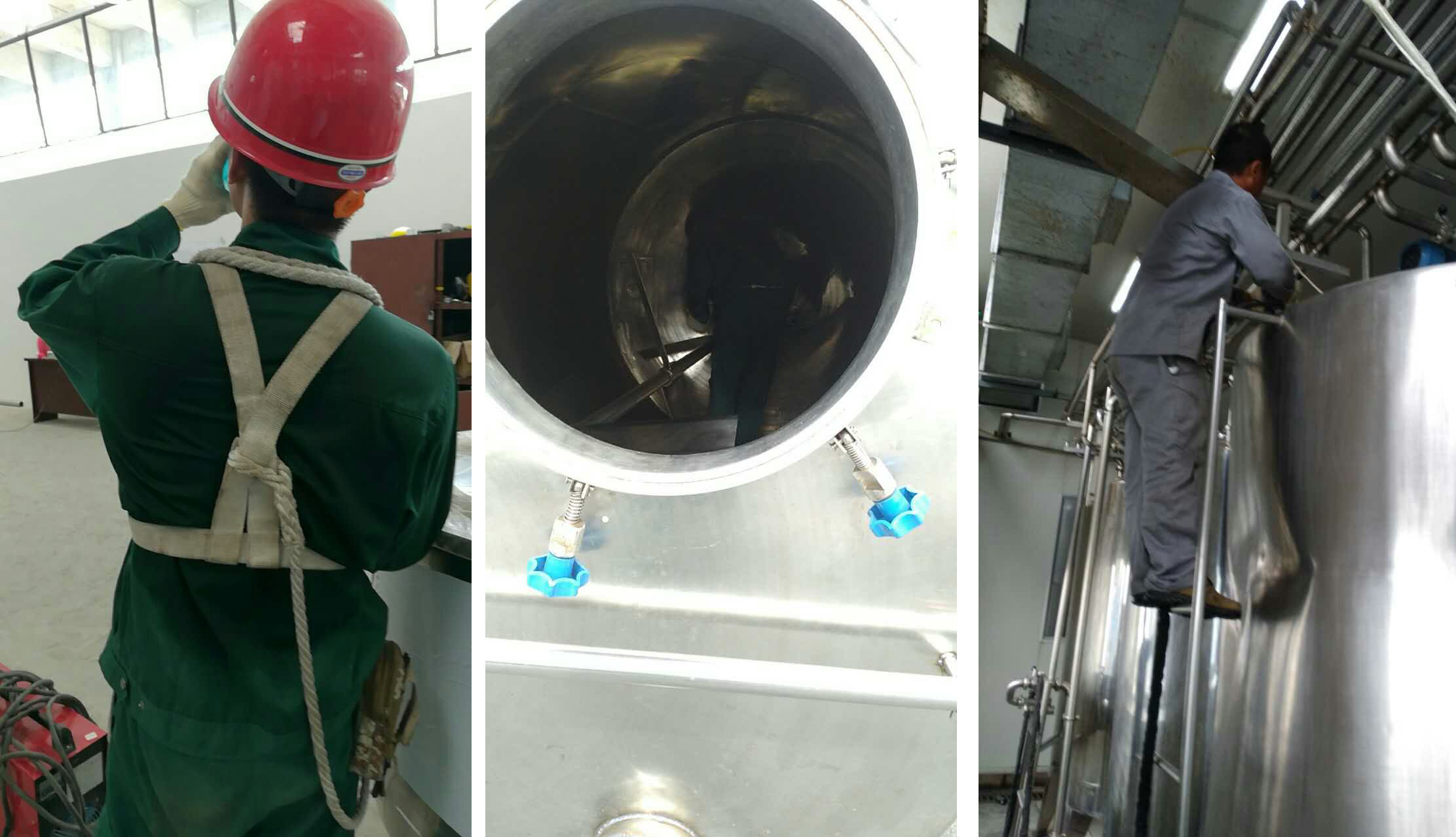 The stainless steel surface at high temperature is like a hot roast plate, it's a strong burning sensation when touching it. The temperature in a tank with poor ventilation is obviously a few degrees higher than that outside the tank. Sweat soaked the clothes, and the work on the hand was still going on. Because it is our commitment to delivery the goods on time and finish on schedule.