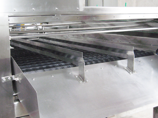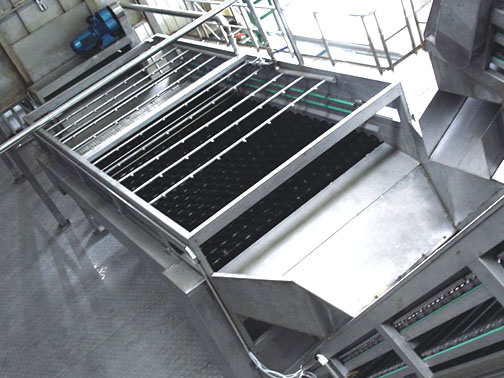 動(dòng)力由減速電機(jī)提供,通過鏈輪和鏈條傳遞至毛刷棍及尼龍棍?;顒?dòng)門可根據(jù)需要打開,一般用于軸承和鏈條調(diào)節(jié)等設(shè)備維護(hù)。設(shè)備裝有集中潤(rùn)滑裝置,方便給軸承進(jìn)行潤(rùn)滑。