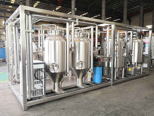 該設(shè)備主要由糖化系統(tǒng)和發(fā)酵儲(chǔ)酒系統(tǒng)組成,單批次處理量為200L,適用于新品研發(fā)或小批量生產(chǎn)需要