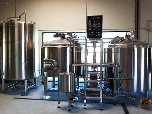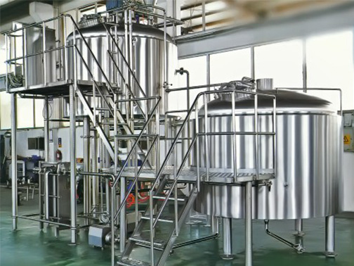 該系統(tǒng)主要由糖化鍋、煮沸鍋、沉淀槽、離心泵、換熱器、控制柜組成。主要工作流程為:粉碎好的麥芽輸送到糖化鍋同時(shí)加熱水進(jìn)行糖化,糖化后進(jìn)入煮沸鍋煮沸60-90分鐘后通過(guò)離心泵進(jìn)入換熱器進(jìn)入到后道發(fā)酵系統(tǒng)。