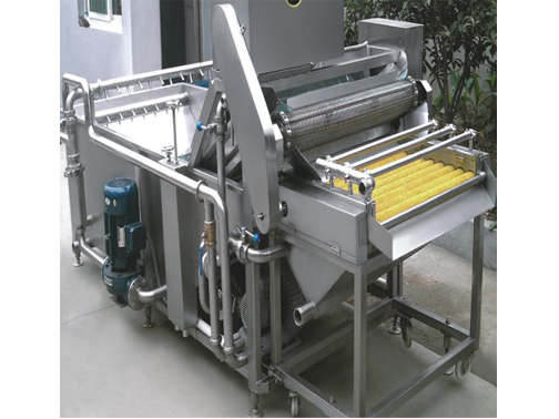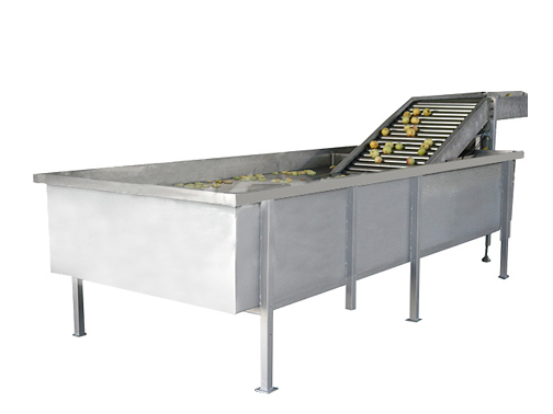 果蔬直接進(jìn)入鼓泡清洗機(jī),通過高壓鼓風(fēng)機(jī)產(chǎn)生的氣體使得浸泡池內(nèi)的水產(chǎn)生大量氣泡并不斷翻滾,對果蔬進(jìn)行全面徹底的浸泡清洗,利用循環(huán)水清洗效果更好,然后通過離心泵,由自帶的提升裝置將水果送入下道工序;提升段設(shè)有噴淋裝置,可對果蔬進(jìn)行二次清洗。清洗過程可根據(jù)需要加入適當(dāng)?shù)那逑聪疽?,清洗殺菌效果好?/p>