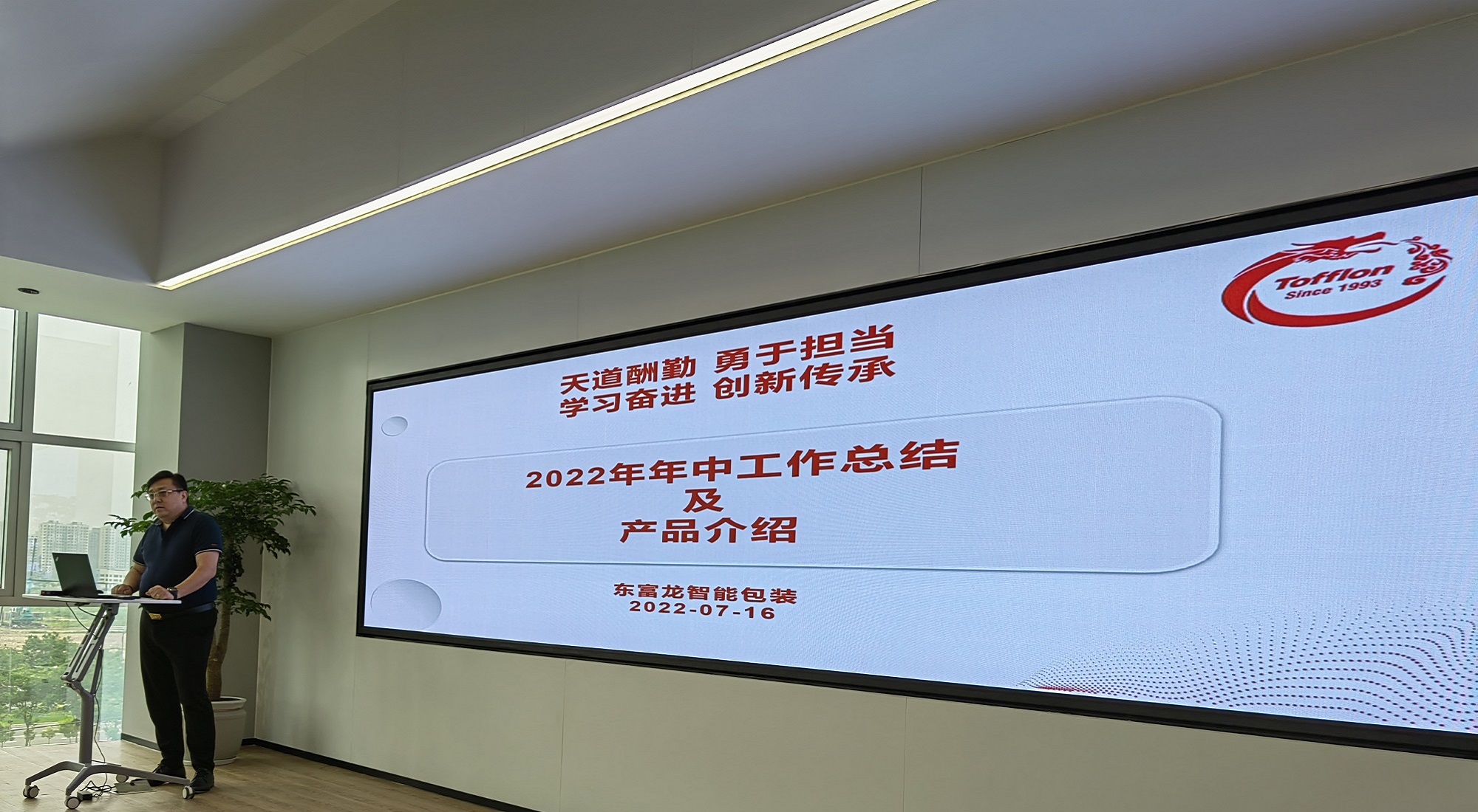 2022年7月16日,東富龍食品工程事業(yè)部在江蘇東臺順利召開2022年年中營銷會議。在東富龍集團副總裁鄭效友的統(tǒng)籌安排下,食品工程事業(yè)部總經理虞豐結攜東富龍輝河、東富龍智能包裝以及東富龍承歡各部門經理參加了本次會議。本次會議重點對東富龍食品工程事業(yè)部2022上半年度工作進行了總結,同時對未來發(fā)展方向進行了部署與規(guī)劃。